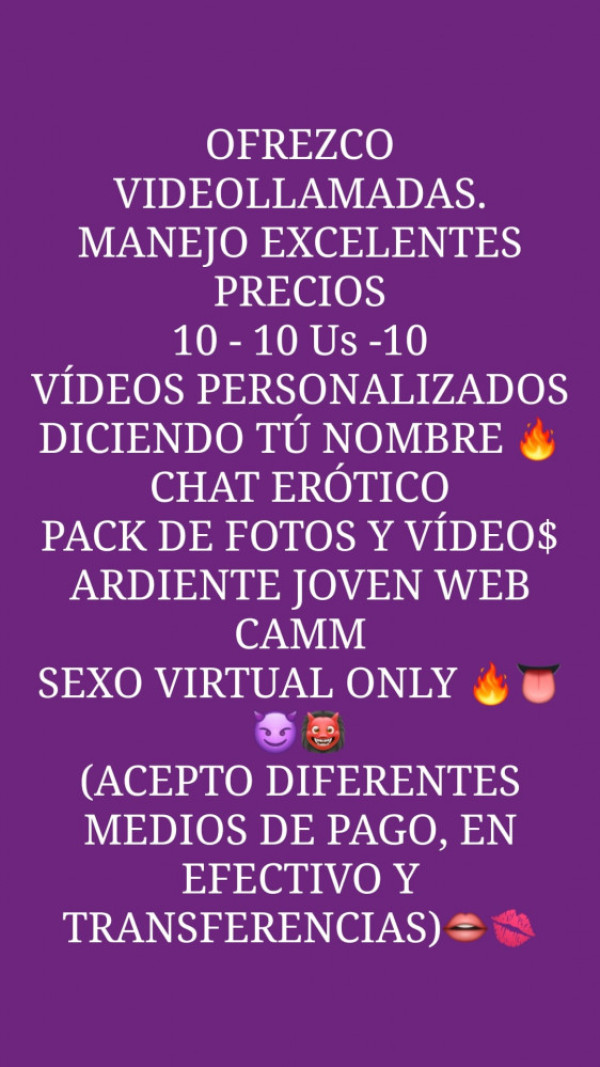 CUENTO CON APTO PRIVADO MUY DISCRETO Y SEGURO, VOY A HOTELES Y PUSH, DISPONIBLE 24/7 TENGO HERMOSA LENCERIA. TAMBIEN OFREZCO RICOS PACKSS, CHATT EROTICO, VIDEOSS PERSONALIZADOSS DICIENDO TU NOMBRE, VIDEOLLAMADASSS Y MUCHO MASSS. LLAMAMEEE PARA COMPLACERTE